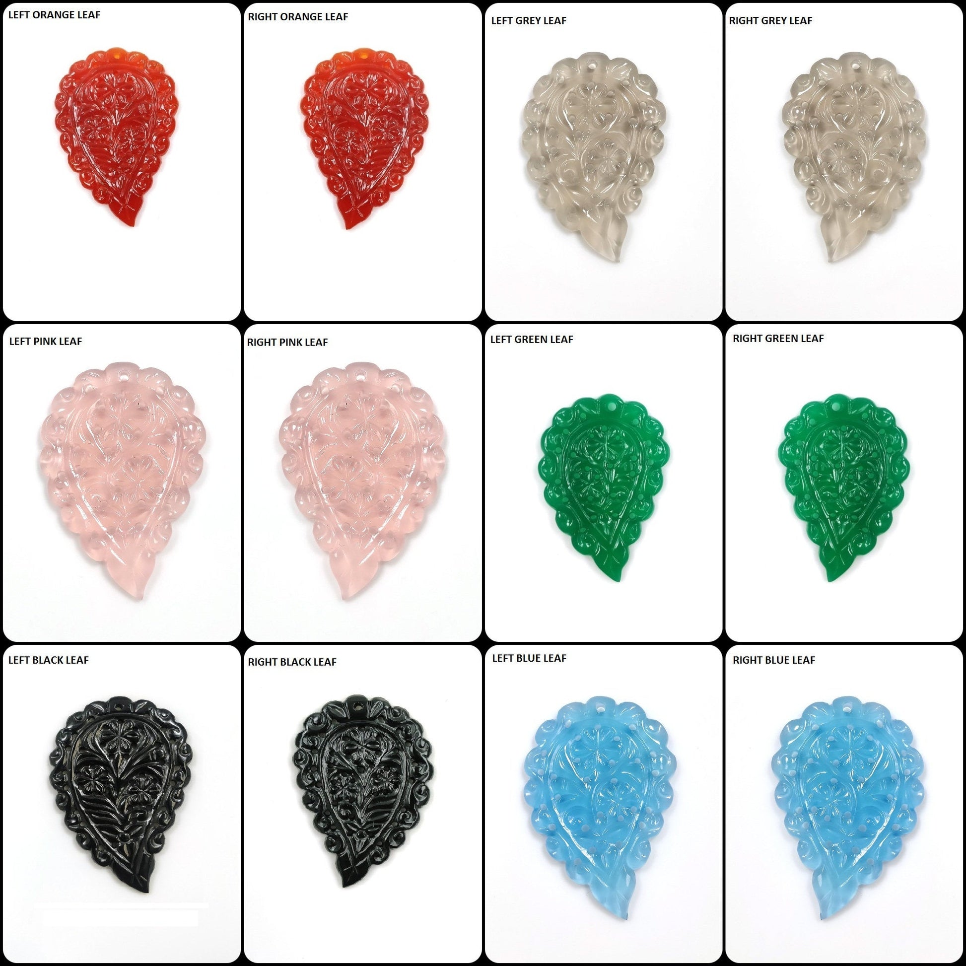 ONYX Gemstone MEDIUM LEAF Carving : 29.00cts Natural Onyx Gemstone One Sided Hand Carved Medium Size Indian Leaf 43*29mm 1pc For Pendant