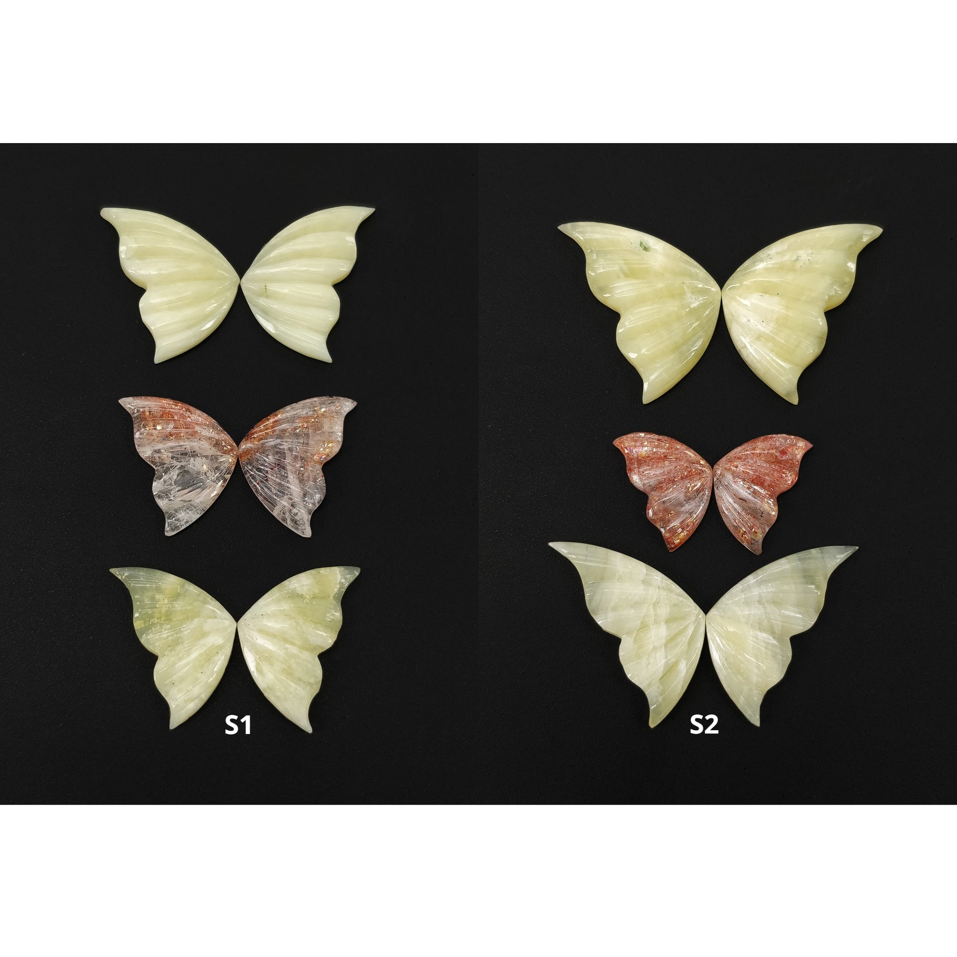 Opal & Sunstone Gemstone Carving : Natural Untreated Pink Opal And Orange Sunstone Hand Carved Butterfly 3 Pair Set