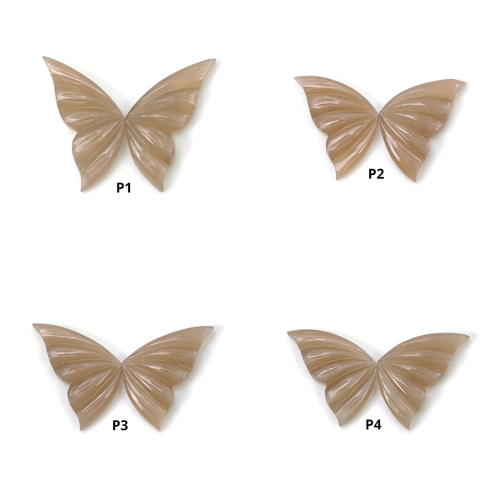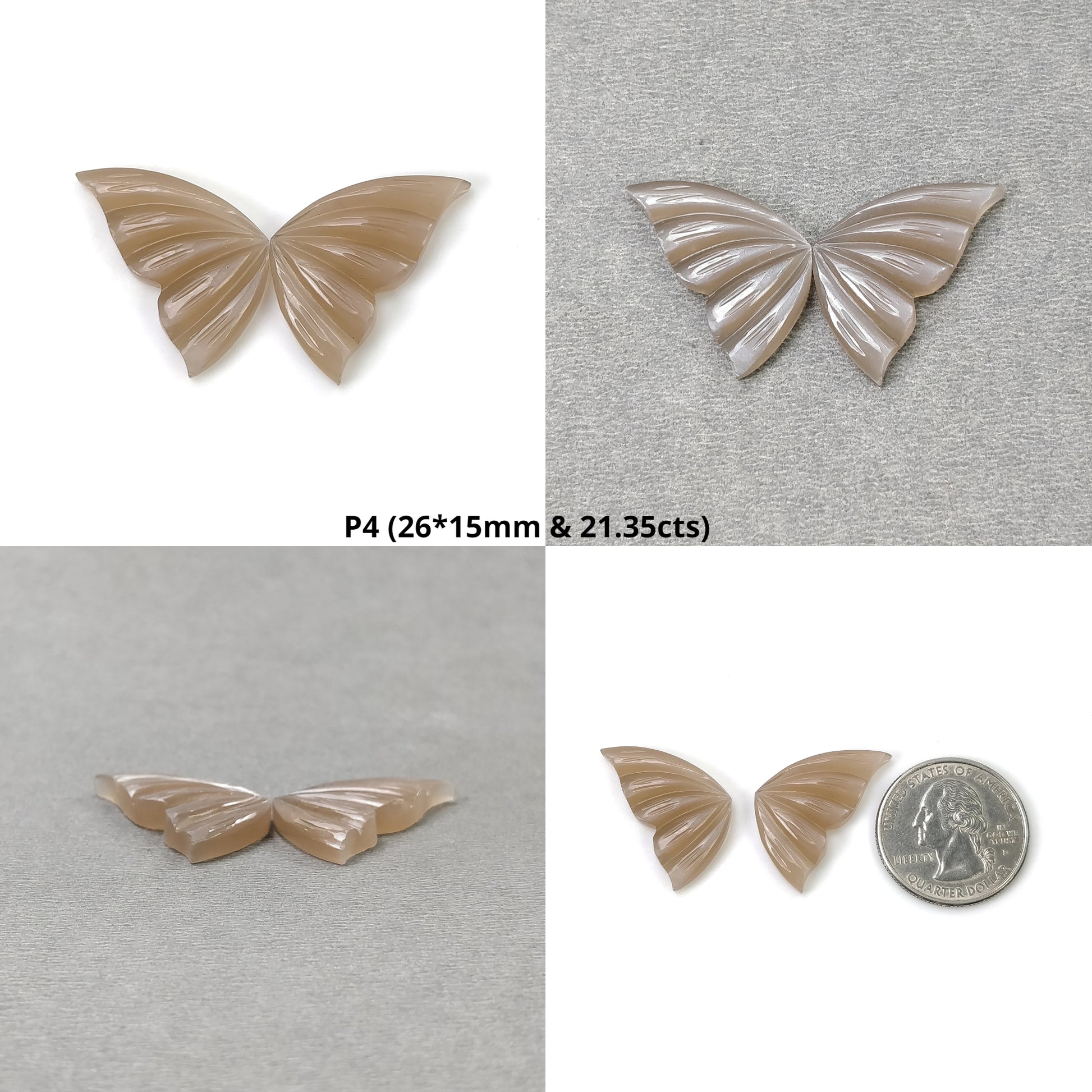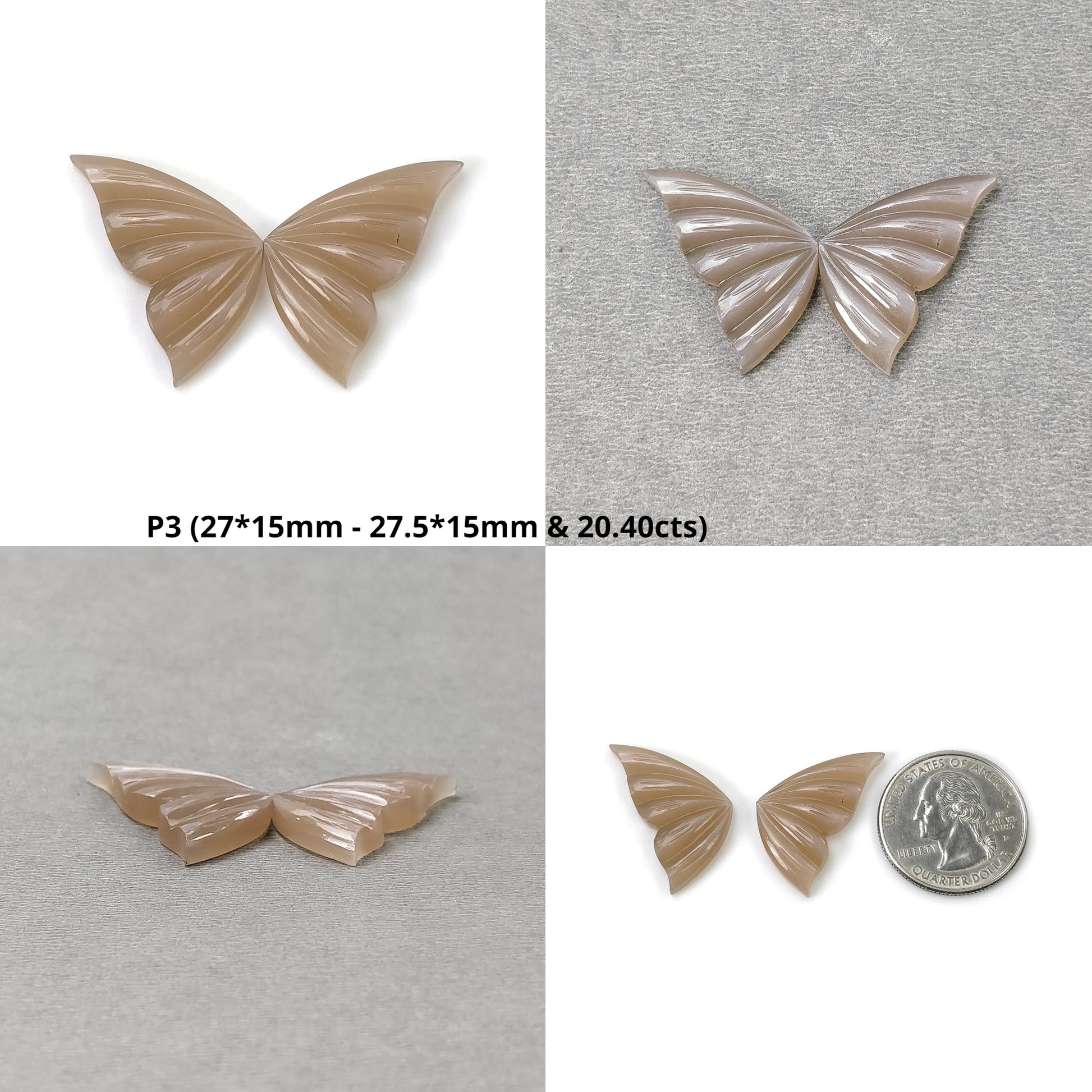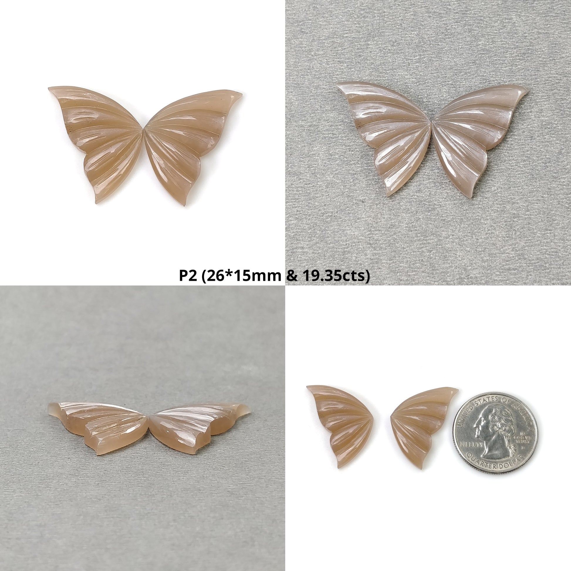 PEACH MOONSTONE Gemstone Carving : Natural Untreated Unheated Moonstone Hand Carved BUTTERFLY Pair