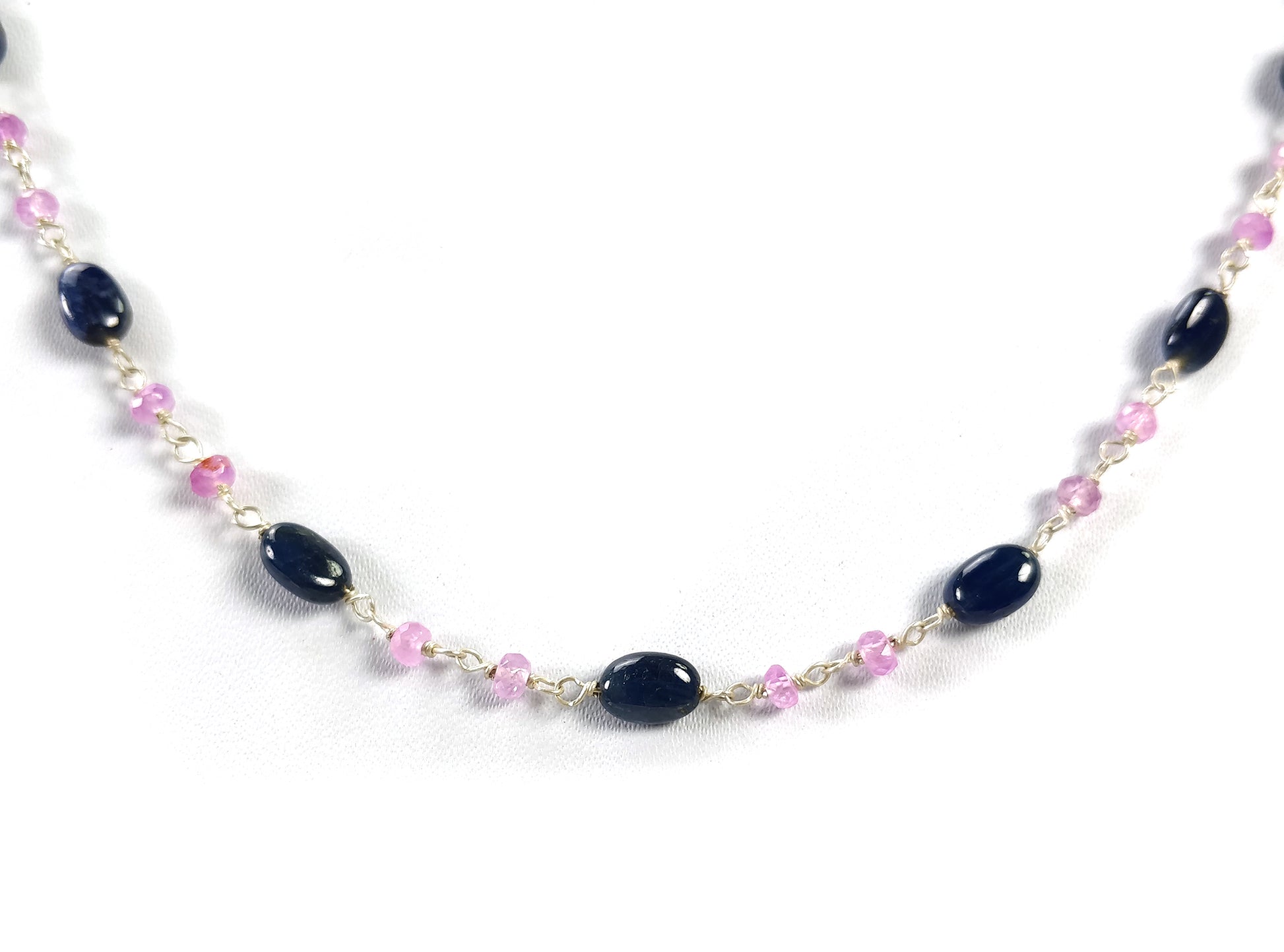 PINK BLUE SAPPHIRE Gemstones Beads Necklace : Natural Blue Sapphire Beads Sterling Silver Chain Necklace 17" Gift For Her