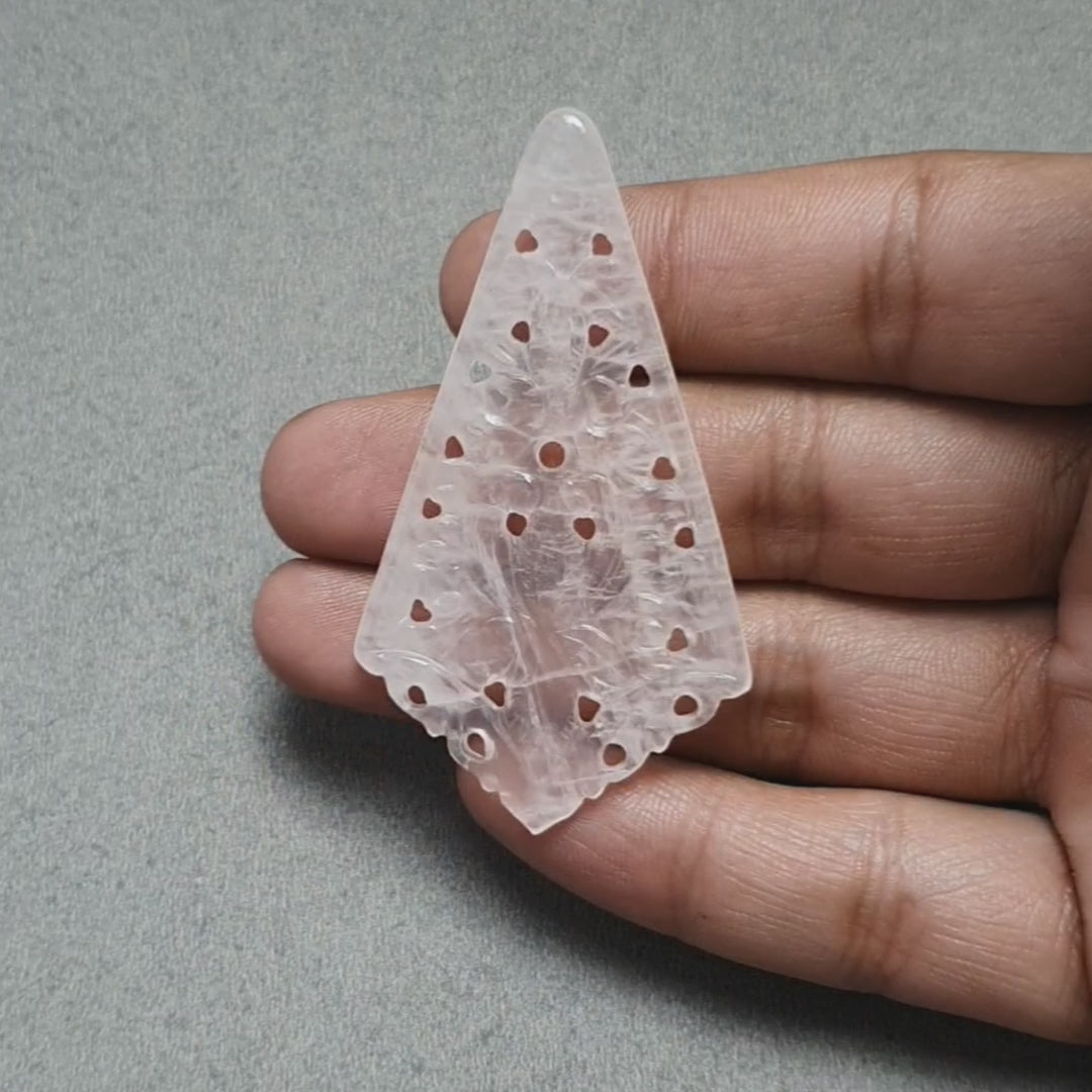 PINK ROSE QUARTZ Gemstone Carving : 44.40cts Natural Untreated Quartz Hand Carved Uneven Shape 65.5*36.5mm
