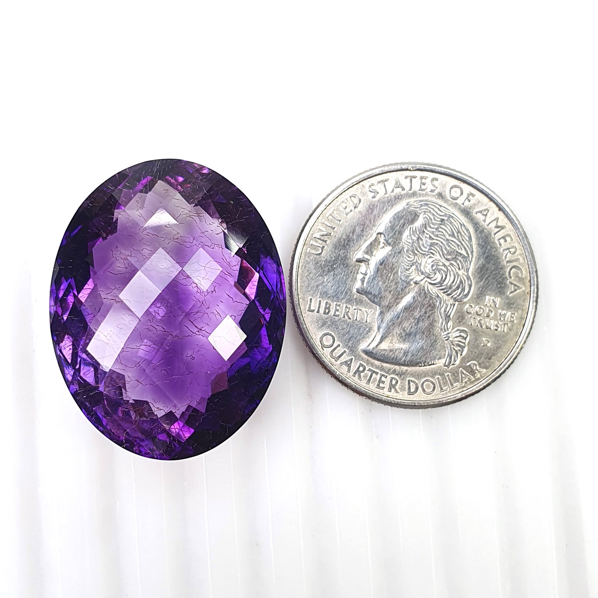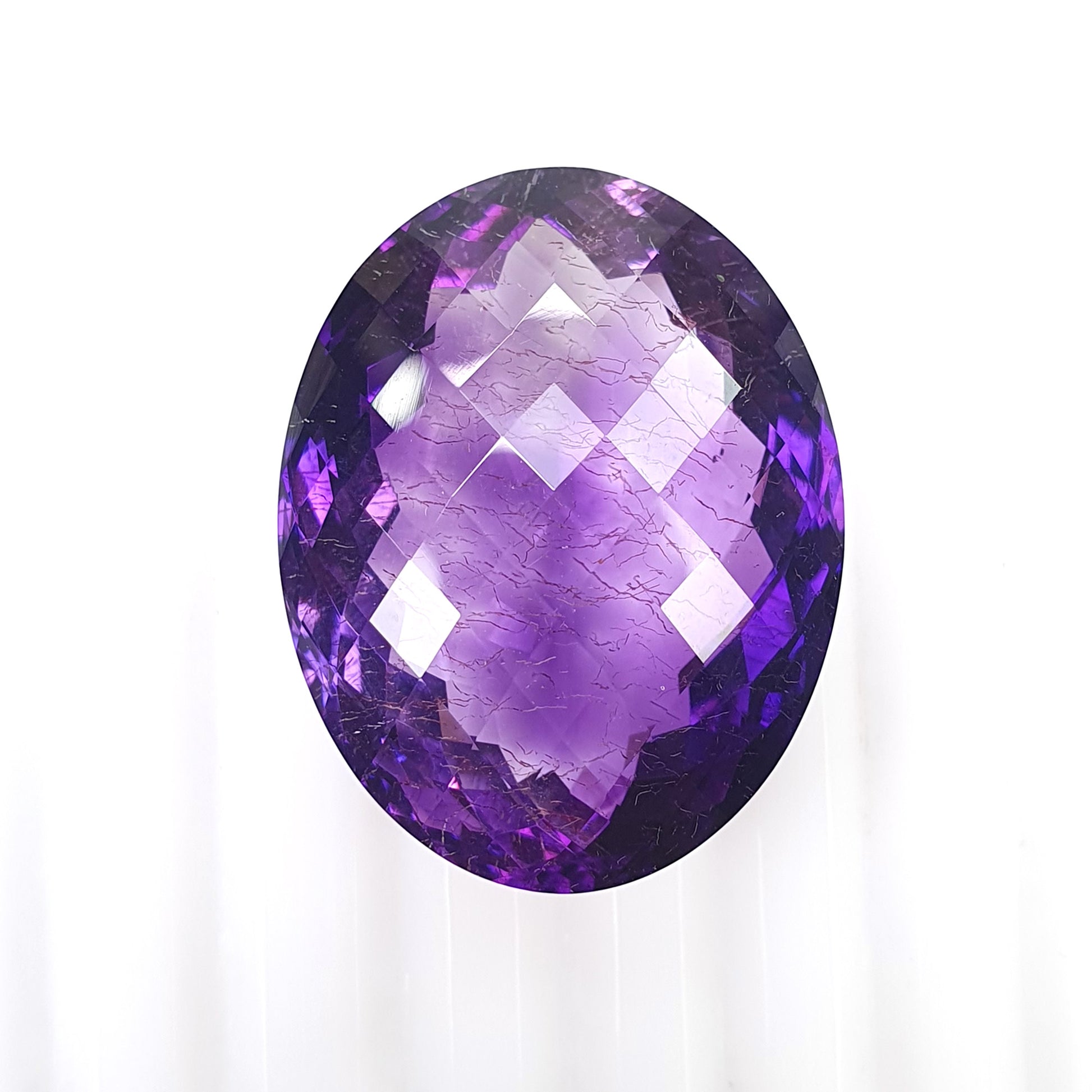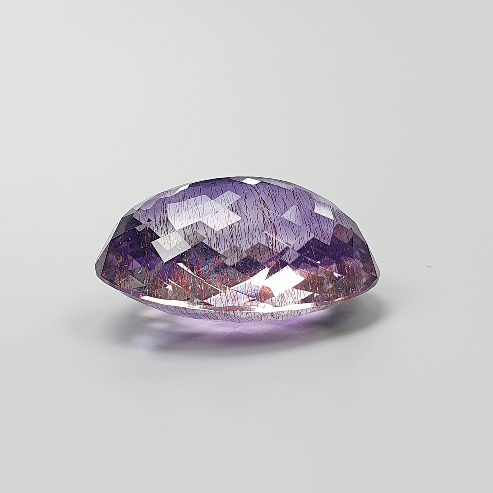 PURPLE RUTILE AMETHYST Quartz Gemstone Checker Cut : 45.00cts Natural Untreated Amethyst Oval Shape 27*21mm (With Video)