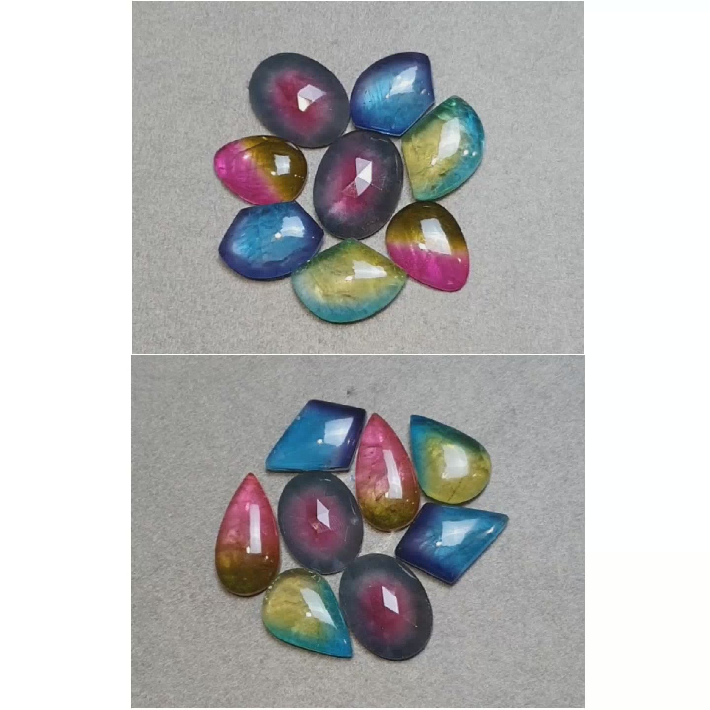 Quartz Doublet Gemstone Cabochon & Rose Cut : Natural Crystal Quartz Oval Pear Uneven Shape 8pcs Set