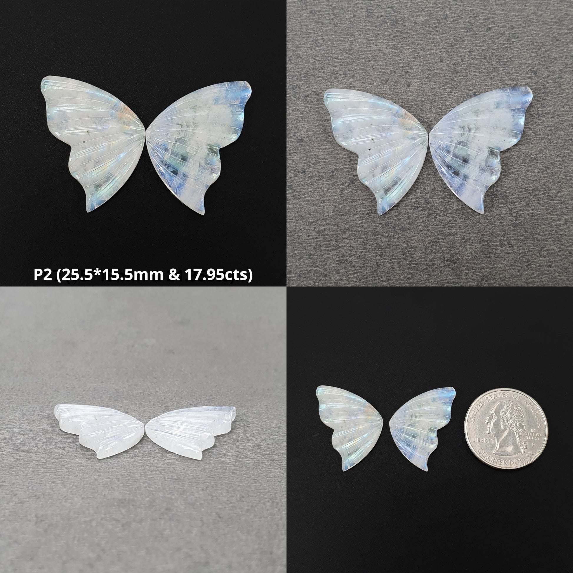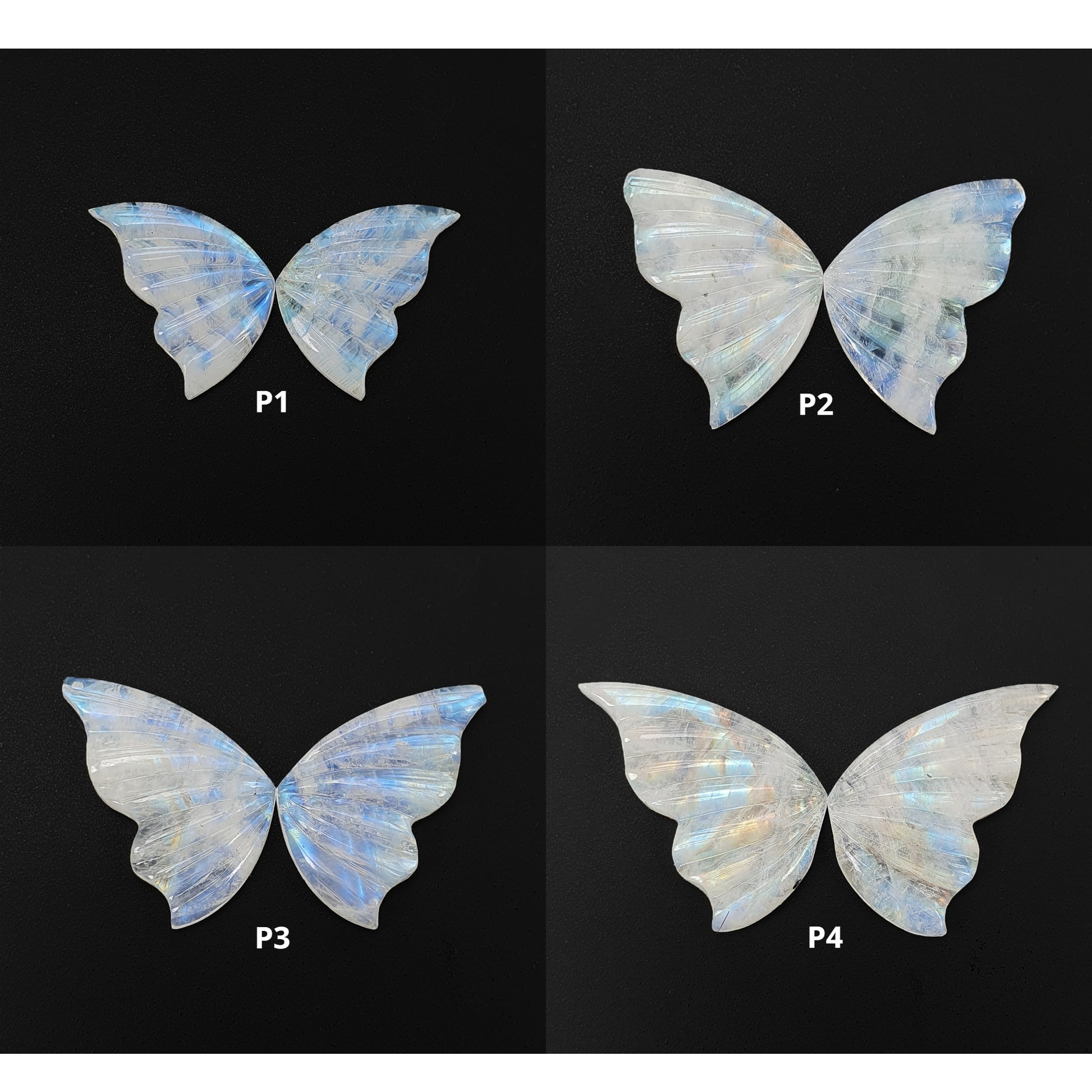 Moonstone Gemstone Carving : Natural Untreated Unheated Rainbow Moonstone Hand Carved BUTTERFLY Pair