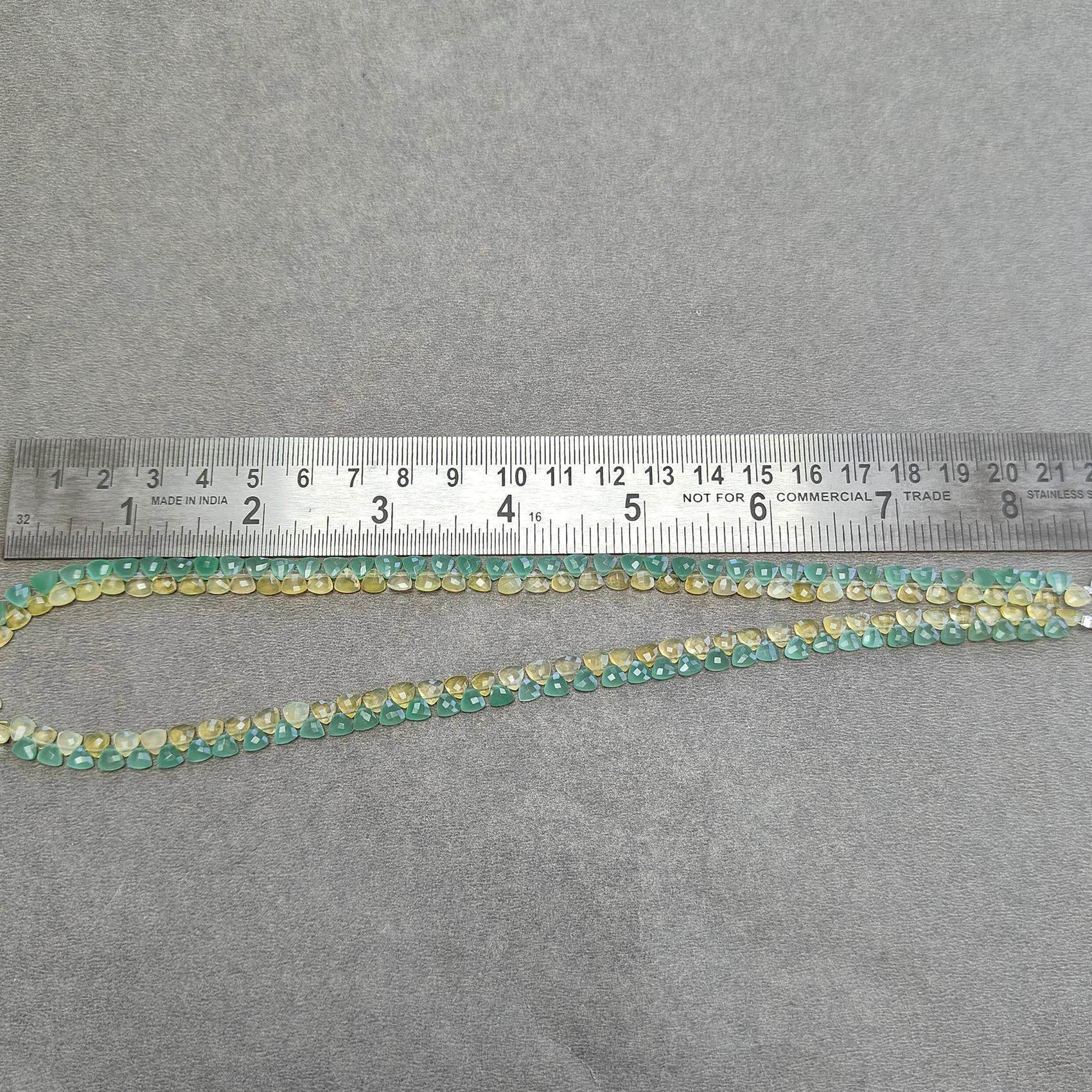 Opal & Quartz Beads Necklace : 11.95gms 925 Sterling Silver Natural Yellow Opal Green Quartz Briolette Faceted Triangle Necklace 18"