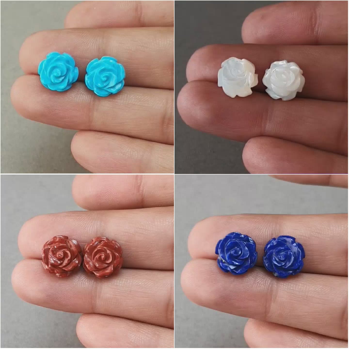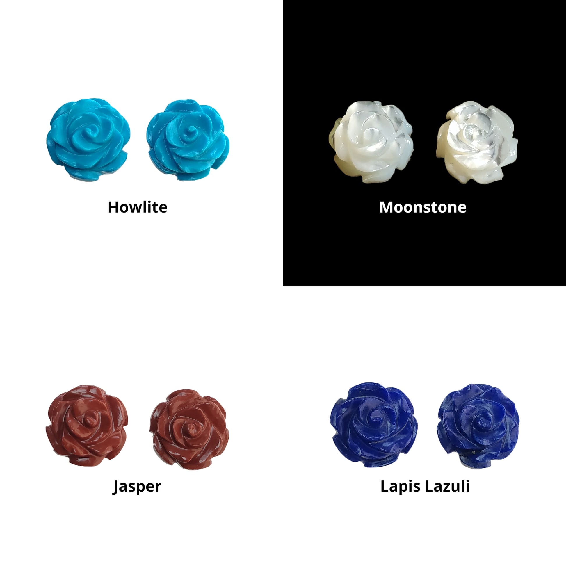 Howlite, Moonstone, Jasper & Lapis Lazuli Gemstone Carving : Natural Round Shape Hand Carved Rose Flower Pairs
