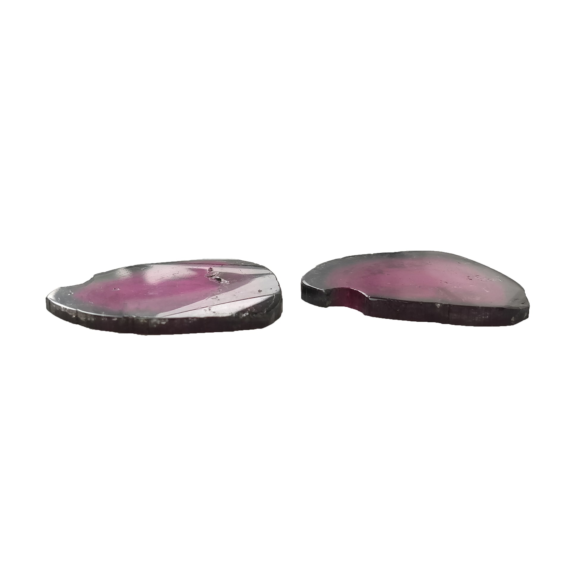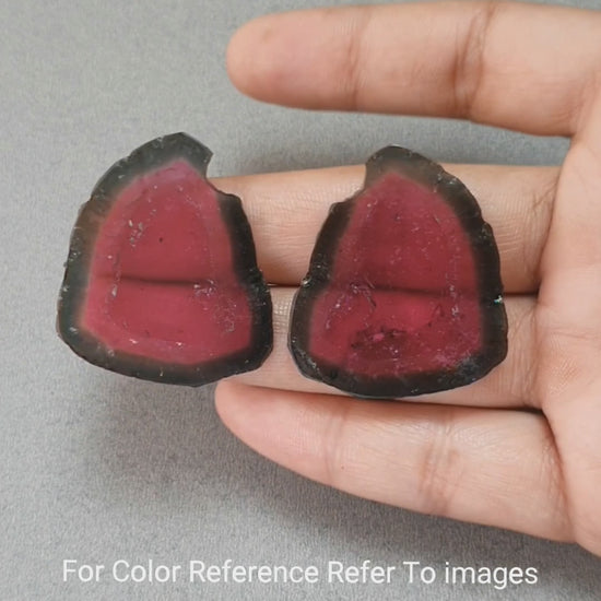 Watermelon TOURMALINE Gemstone Flat Slices : 90.40cts Natural Untreated Tourmaline Uneven Shape 40*35mm Pair